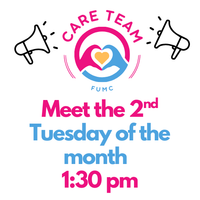 The FUMC Care Team meets monthly in the Fidelis classroom and is lead by LeAnne Dowell. The Care Team offers support for people within our church family in times of illness, bereavement, and extended confinement. Volunteers are always needed to bring meals, write cards, and visit nursing home and home-bound members. If you know someone in our church family that would benefit from this ministry or if you would like to volunteer, please contact the church office for more info.