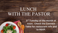 Once a month at a restaurant in Durant, you can join Pastor John at noon for fellowship and lunch. Please signup on the Connect Table so we know you are joining us.