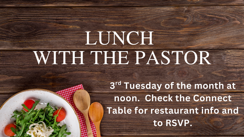 Once a month at a restaurant in Durant, you can join Pastor John at noon for fellowship and lunch. Please signup on the Connect Table so we know you are joining us.